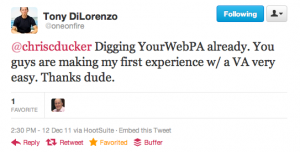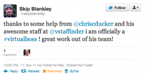 Nowadays, I don’t do this searching myself. I leave it up to my VA, who manages all the searches via TweetDeck, and sends out pre-written responses that I produced in the course of my experimenting myself, as well as other types of interaction that she handles herself, too.